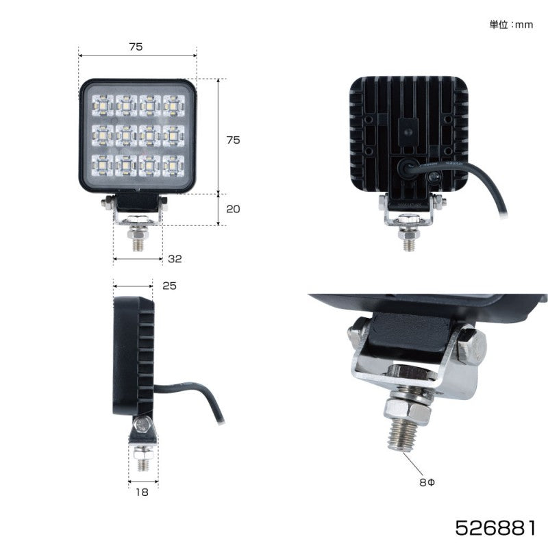 WL-34 LEDワークランプ 角型 12W 3インチ