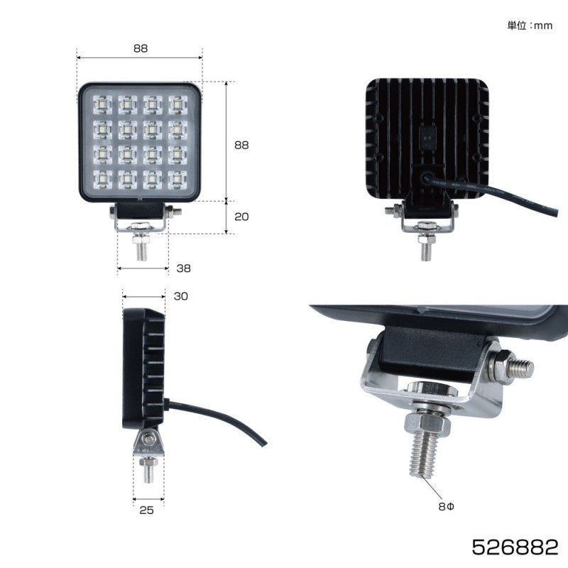 WL-35 LEDワークランプ 角型 16W 3.5インチ